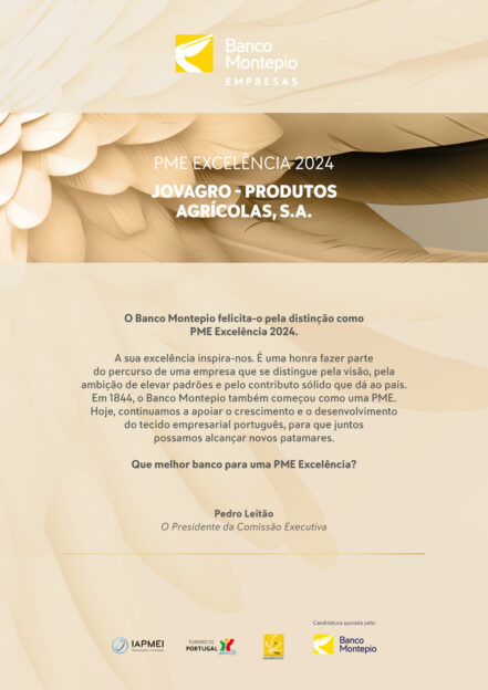 A JOVAGRO – Produtos Agrícolas, S.A. foi reconhecida novamente, pelo terceiro ano consecutivo, com o Prémio de Excelência 2024, uma distinção que celebra o nosso compromisso contínuo com a qualidade,