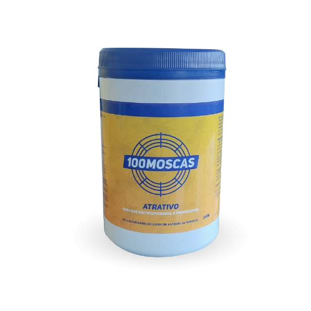 Solução composta por armadilhas e potente isco que atrai as moscas e evita que escapem. O atrativo do 100 moscas consiste num isco em pó composto por leveduras e outros ingredientes autorizados para uso dietético. A fermentação deste pó, atrai as moscas para o interior dos recipientes que formam as armadilhas. As armadilhas, por sua vez, impedem as moscas de escapar, tornado este isco altamente efi caz – reduz 80- 90% das moscas. A sua duração (até 60 dias) cria uma proteção duradoura. Este isco é livre de inseticidas (não tóxico), estando por isso autorizado para uso em agricultura biológica.