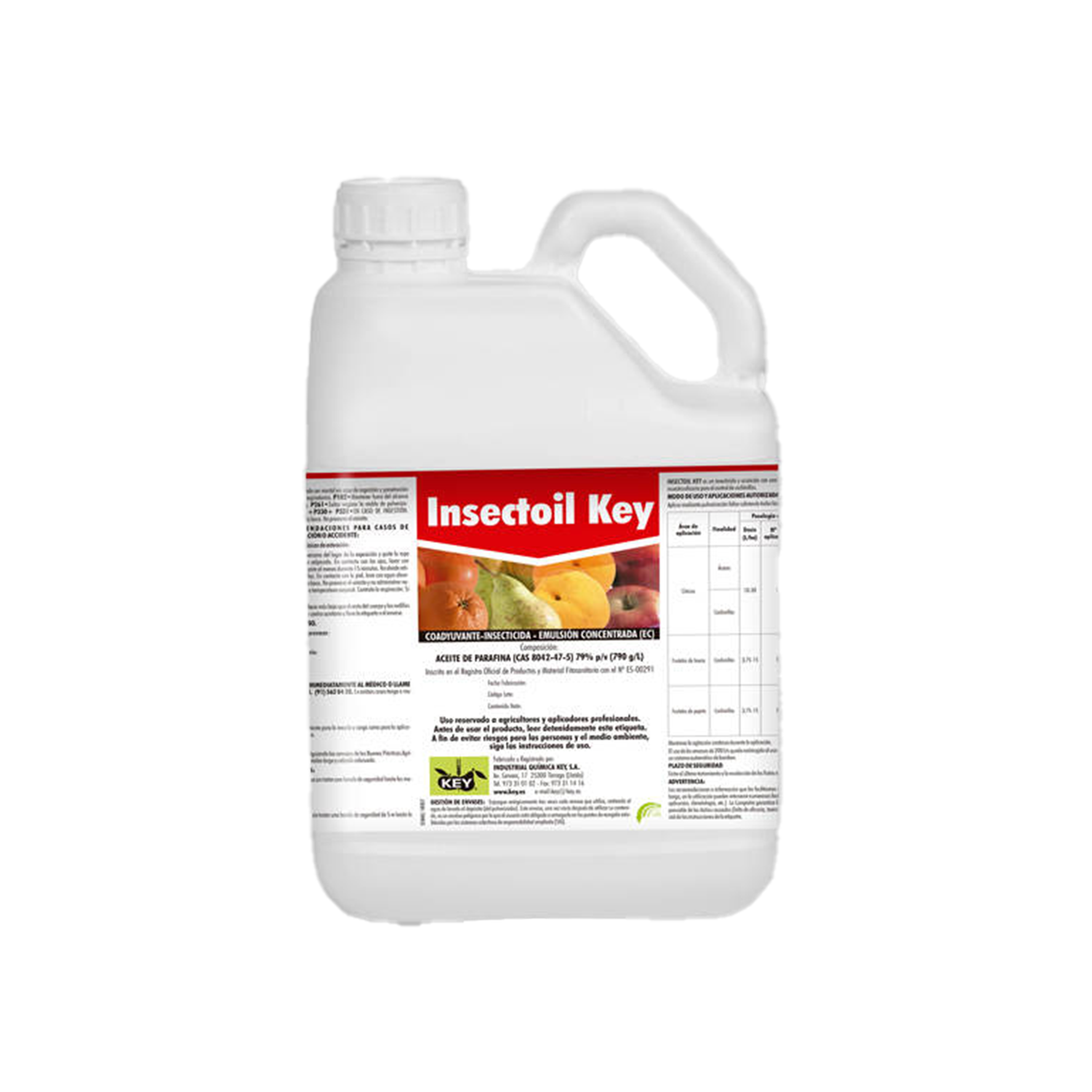 INSECTOIL KEY® é um acaricida e insecticida com base em óleo parafínico, não sistémico, de amplo espectro de acção, pertencente ao grupo dos hidrocarbonetos alcanos. Actua principalmente por asfixia, cobrindo o corpo dos insectos com uma fina camada oleosa impermeável que bloqueia os canais traqueais, impedindo a respiração e provocando a sua morte.