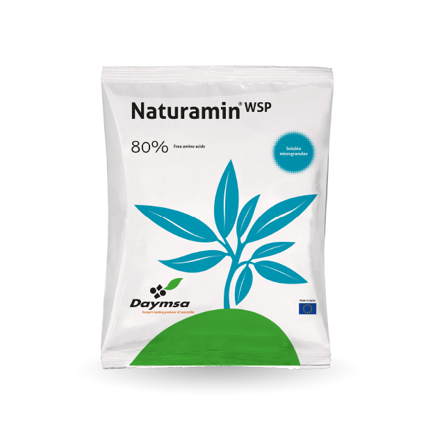 Naturamin-WSP estimula o crescimento equilibrado da cultura. O seu uso é recomendado nas fases em que a cultura exige maior consumo de energia e nos momentos em que a cultura é submetida a condições desfavoráveis (transplante, calor, frio, granizo, vento, excesso e falta de água, salinidade, ataques de patógenos, fitotoxicidade, entre outras situações de stress). Alta concentração de aminoácidos de cadeia curta (80%), com um aminograma equilibrado, alta concentração de aminoácidos básicos e alta concentração de aminoácidos com atividade específica.