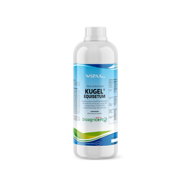 KUGEL® EQUISETUM fortalece os tecidos da planta inibindo o desenvolvimento de doenças fúngicas, míldio, oídio e podridão. 100% Extrato de cavalinha (o mais concentrado do mercado). Inibe o desenvolvimento de fungos aéreos. Atua por contato e tem um efeito anti-esporulante de ação preventiva e curativa.